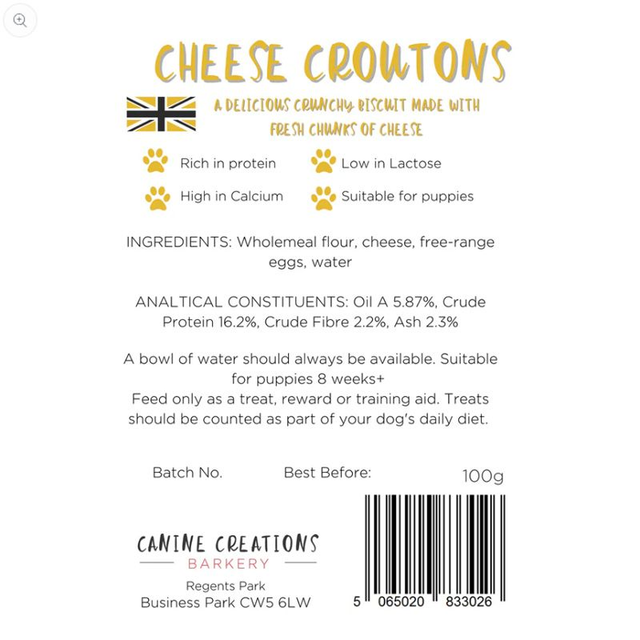 Make training extra rewarding with our Cheese Croutons – bite-sized, cheesy delights baked with fresh chunks of real cheese. These treats are packed with flavour and crunch, making them a paw-some