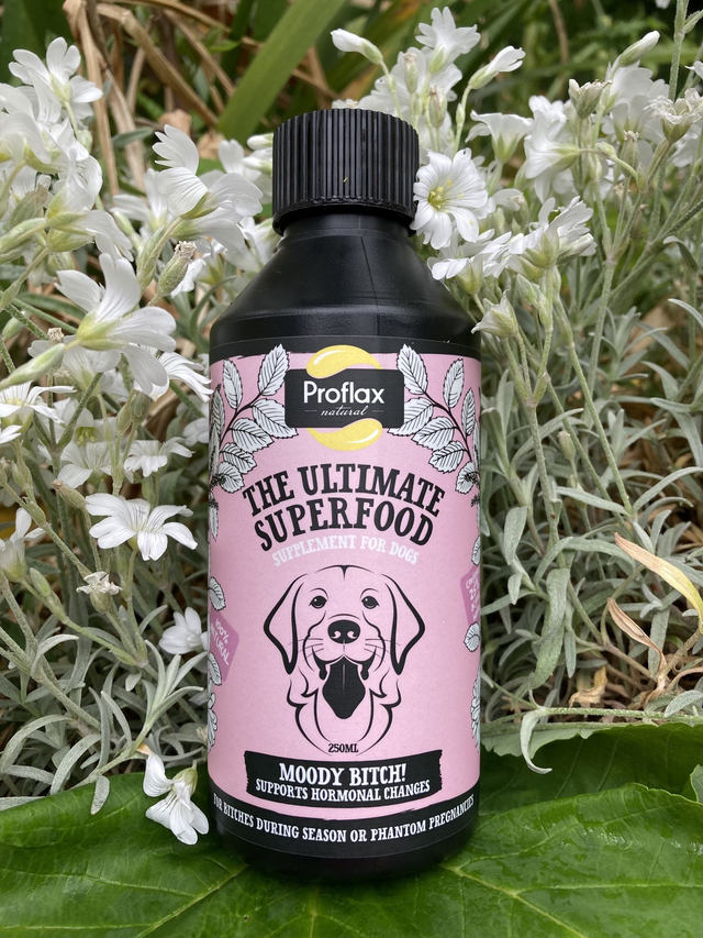 Is your female dog experiencing mood swings or hormonal imbalances? Bring back the balance with Proflax Moody Bitch. This all-natural supplement is specially formulated to support the emotional and physical well-being of your furry friend.