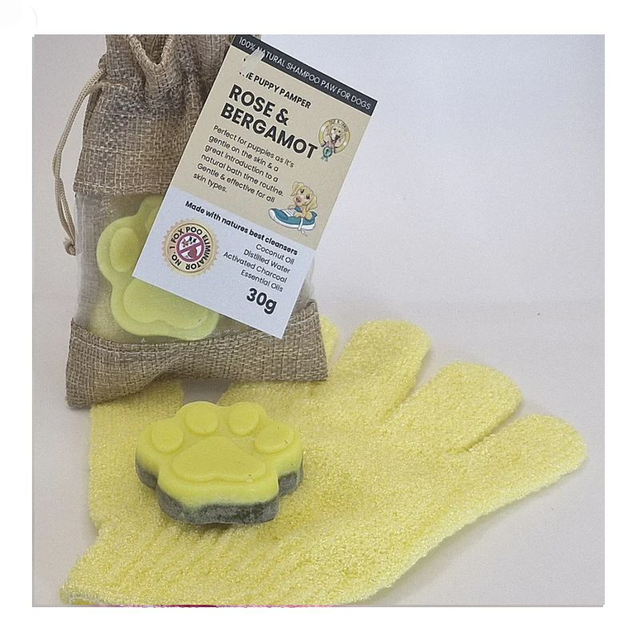 Treat your puppy to the natural goodness they deserve with The Puppy Pamper One. Handcrafted with rose and bergamot essential oils, this soothing blend is gentle on young, sensitive skin while helping to heal and protect. Activated charcoal lifts dirt, odours, and even stubborn fox poo, while organic coconut oil nourishes for a soft, shiny coat.