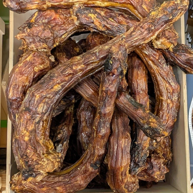 Turkey Necks are a fantastic natural chew that offer both enjoyment and functional benefits for your dog. Their firm, crunchy texture provides excellent mental stimulation, encouraging calm, focused chewing behaviour.